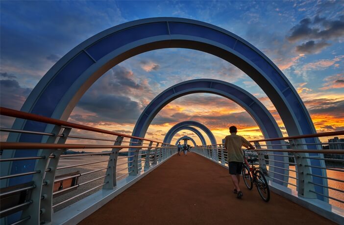 무지개다리는 그 이름처럼 다채로운 색깔로 꾸며져 있으며, 이곳은 사진 찍기 좋은 포토존으로 유명한데요. 특히 해질 무렵에 방문하면 야경으로 불빛이 들어오므로 아름다운 무지개 색깔의 조명을 보며 걸을 수 있습니다. 유리데크로 바다를 밟고 지나가는 듯한 짜릿함과 바다와 그렇게 높지 않으므로 심리적인 안정감을 갖고 편안히 산책할 수 있습니다.